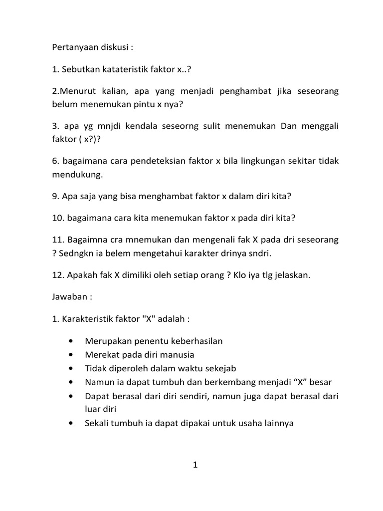 Faktor x kewirausahaan. Faktor X dapat dikatakan berpengaruh pada usaha apabila seseorang yang memilikinya telah menemukan kunci atau pintunya. Hidupnya ia bergerak berjalan berpikir mengetuk pintu mengambil resiko mencari produk membuat. Diposting oleh Unknown di 0207.