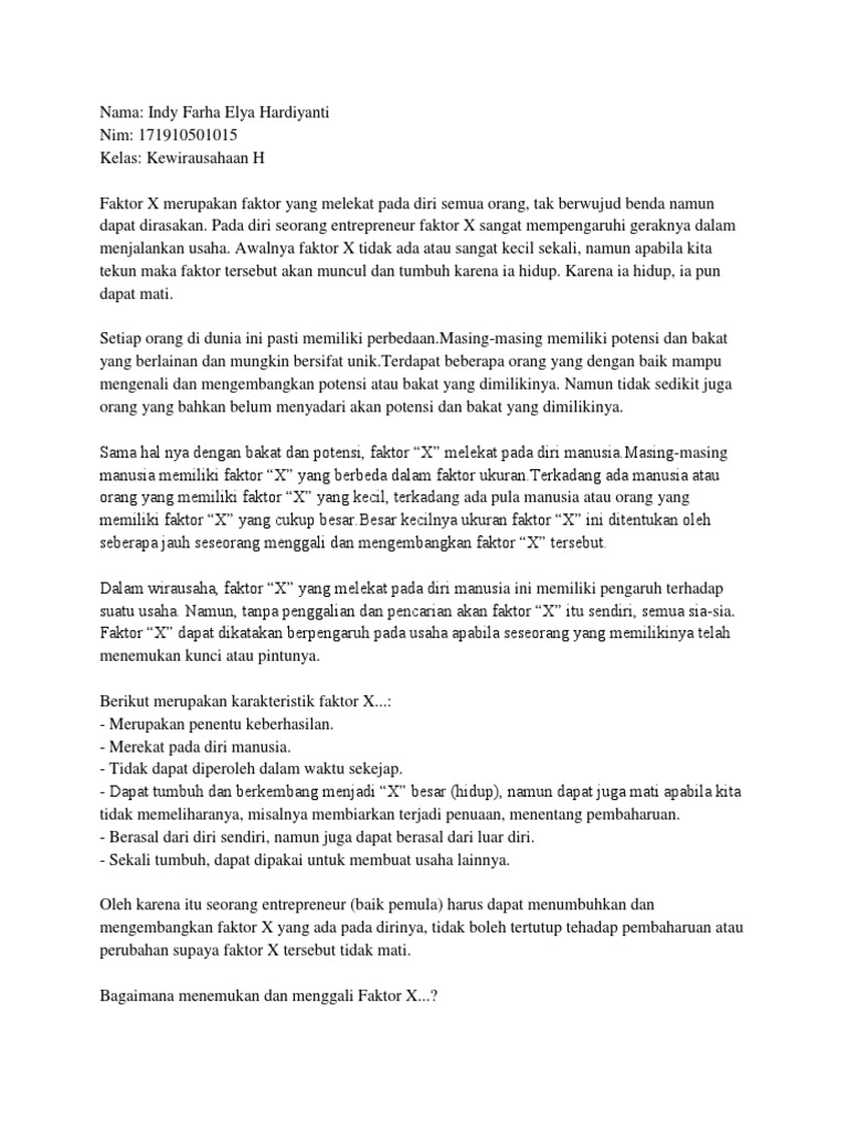 Faktor X Dalam Kewirausahaan Pdf