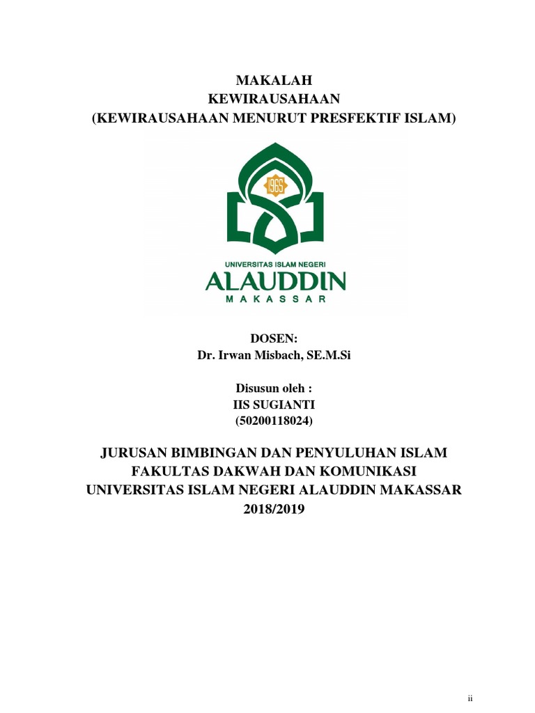Makalah Kewirausahaan Dalam Perspektif Islam Islamic Entrepreneurship Disusun Untuk Memenuhi Tugas Mata Kuliah Kewirausahaan Pdf Download Gratis