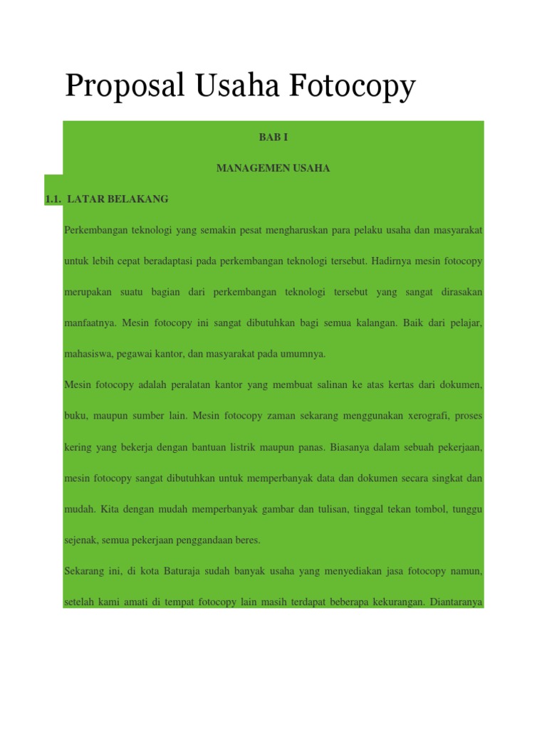 Contoh makalah studi kelayakan bisnis fotocopy. WIRAUSAHA ATK DAN FOTOCOPY DOSEN PEMBIMBING. Sebab fotocopy adalah salah satu kebutuhan sebagian besar pelajar mahasiswa dosen karyawan maupun masyarakat di sekitar lingkungan kampus yang sirkulasi permintaannya dilakukan setiap hari.