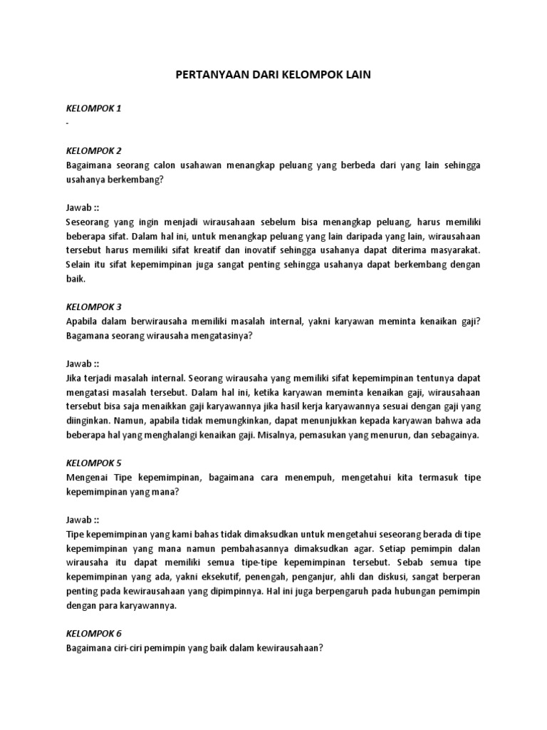 Doc Soal Dan Jawaban Kewirausahaan Erwin Juntak Academia Edu
