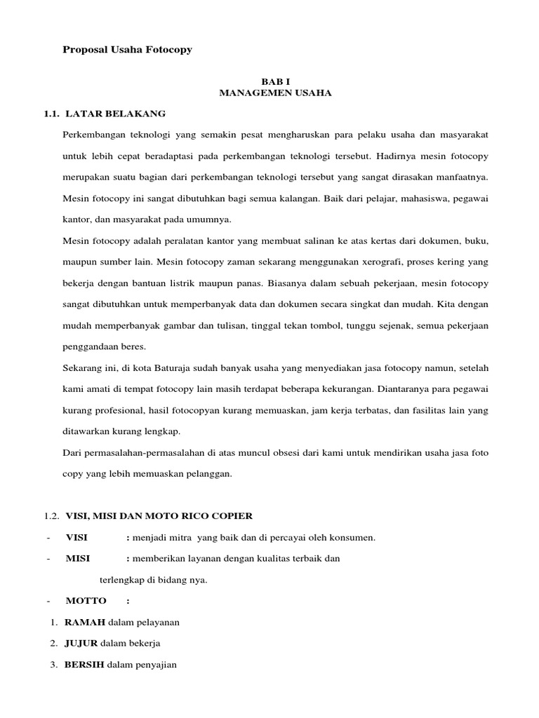 Contoh Proposal Usaha Fotocopy Dan Percetakan Doc Temukan Contoh