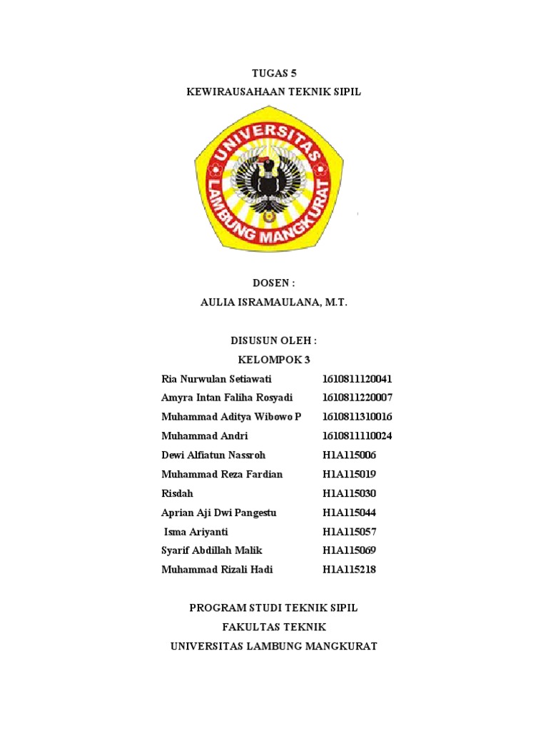 Tugas 5 Kewirausahaan Teknik Sipil Kelompok 3 Pdf