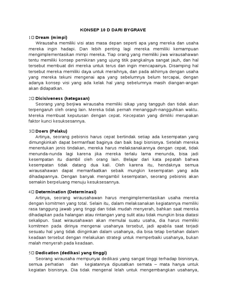 Konsep 10 D Dalam Kewirausahaan