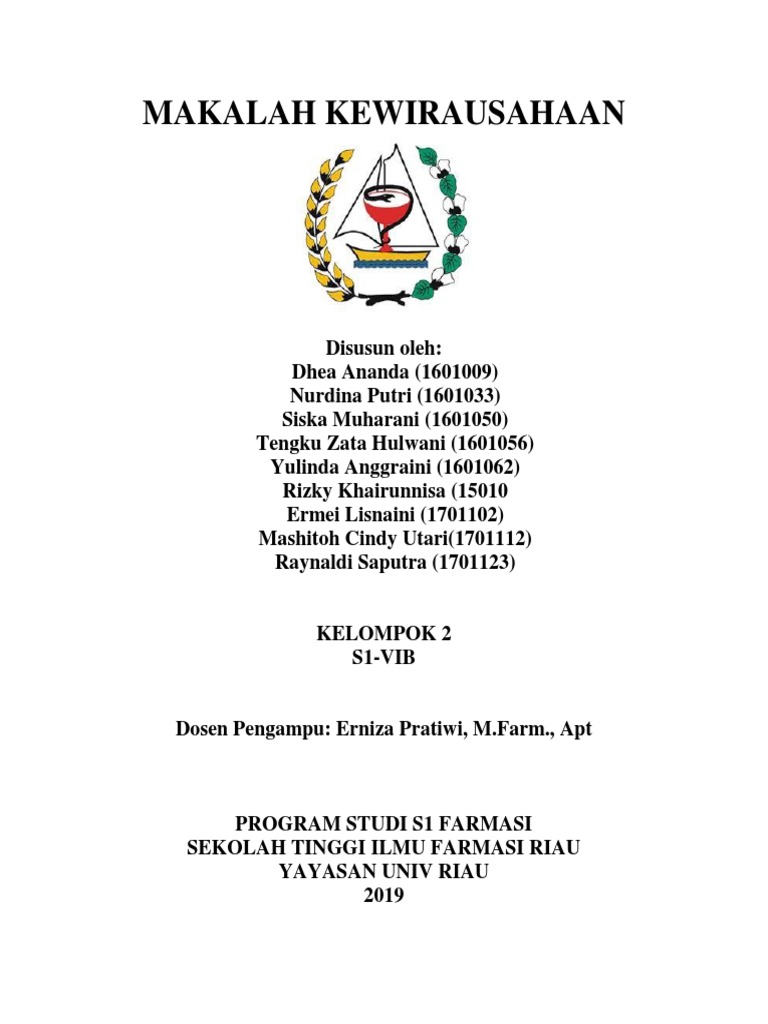 Dwi Kartika Sari 1301025 S1 VI-A. Berikut ini merupakan contoh saran di dalam makalah farmasi yang membahas mengenai perkembangan ilmu farmasi. Makalah Kewirausahaan ini disusun sebagai salah satu syarat untuk mengikuti ujian final.