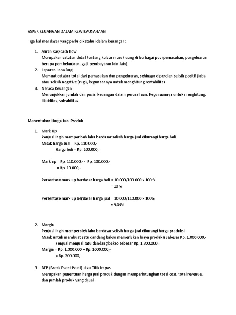 Aspek Keuangan Dalam Kewirausahaan Pdf
