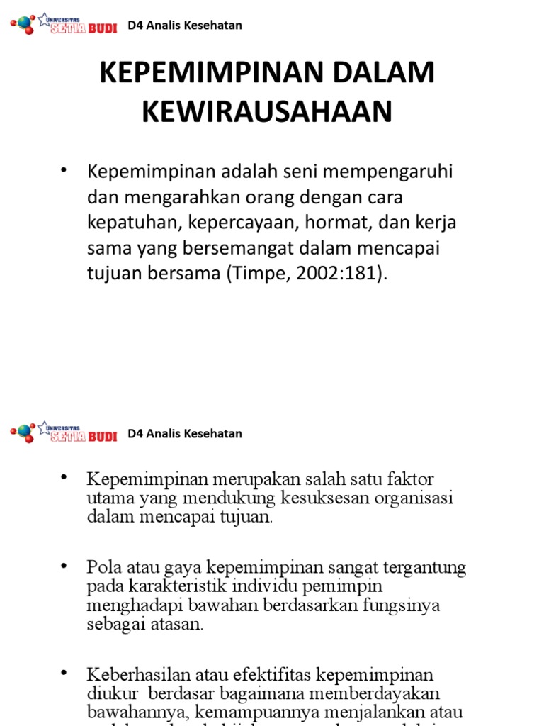 Kepemimpinan Yang Berjiwa Wirausahawan Ppt Download