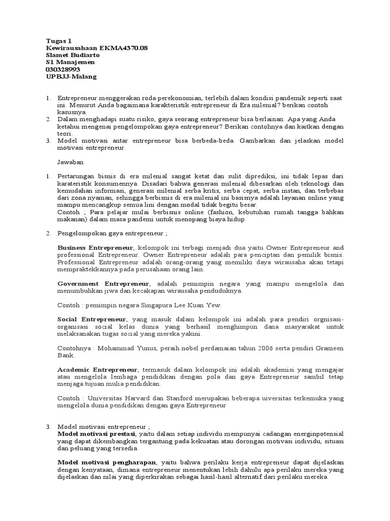 Tugas 1 Mahbubi Ekma4370 Kewirausahaan Pdf Tugas 1 Ekma4370 Kewirausahaan Nama Mahbubi Nim 041473346 Program Studi Manajemen Universitas Terbuka Course Hero