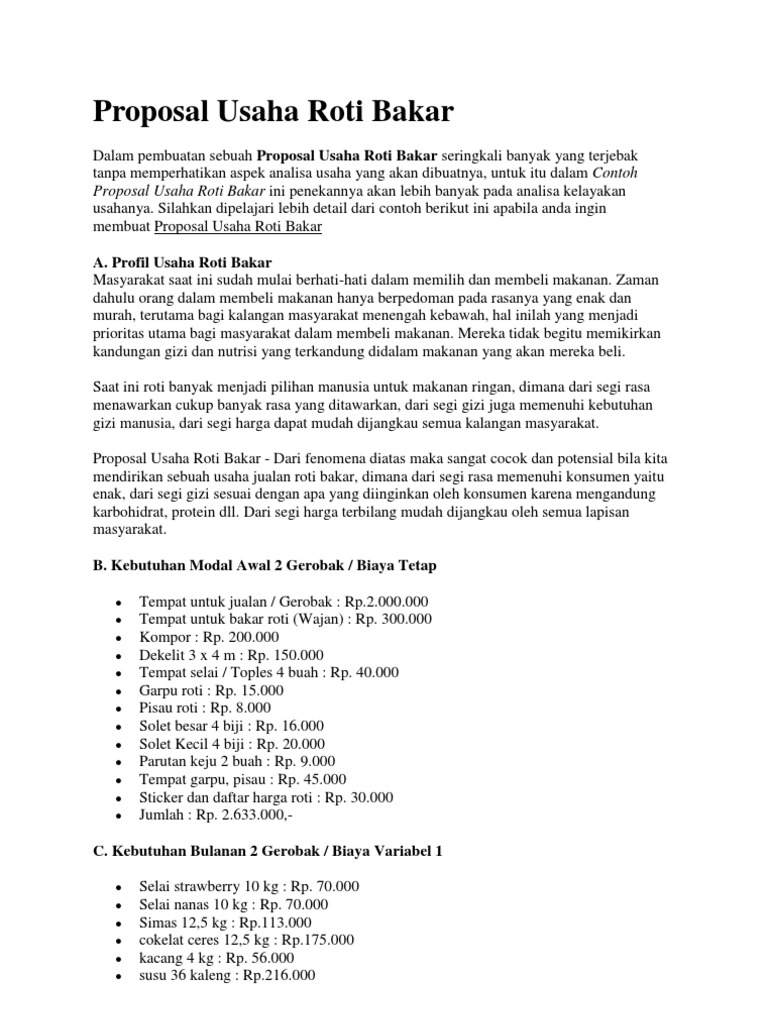 Contoh Proposal Usaha Kecil Roti Bakar Berbagi Contoh Proposal