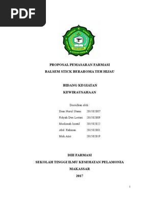 PROPOSAL KEWIRAUSAHAAN PROPOSAL USAHA. Barang siapa dengan sengaja dan tanpa hak melakukan perbuatan sebagaimana dimaksud dalam pasal 2 ayat 1 atau. Lomba Proposal Kewirausahaan Farmasi tingkat Diploma Tiga Farmasi se-Jabodetabek Fakultas Farmasi Universitas Pancasila 29 September 2018 Nama Mahasiswa.