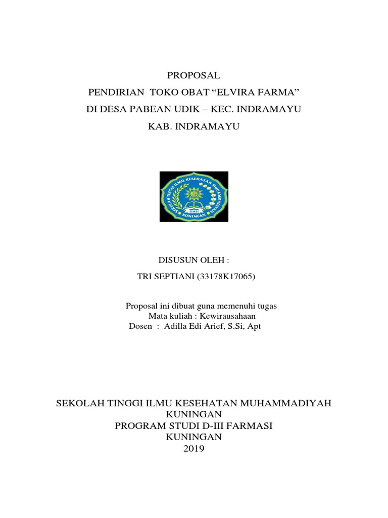 Proposal kewirausahaan farmasi. Salah satu realisasi pembangunan dibidang farmasi oleh pemerintah dan swasta adalah dengan menyediakan sarana. Bangunan Apotek terdiri dari. CONTOH PROPOSAL WIRAUSAHA KATA PENGANTAR Segala puji dan syukur kita panjatkan kepada Allah SWT serta shalawat dan salam kami sampaikan hanya bagi tokoh dan teladan kita Nabi Muhammad SAW.