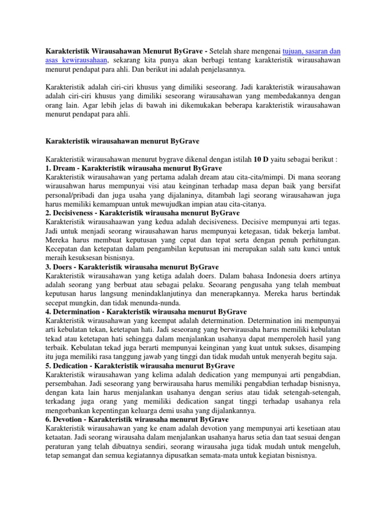 Karakteristik Wirausahawan Menurut Bygrave Pdf
